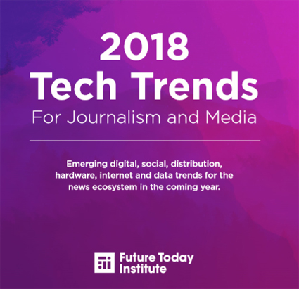 O Relatório de Tendências Tecnológicas para Jornalismo e Mídia de 2018 do Future Today Institute destaca 75 tendências tecnológicas importantes que todos os que trabalham no ecossistema de notícias deveriam seguir.