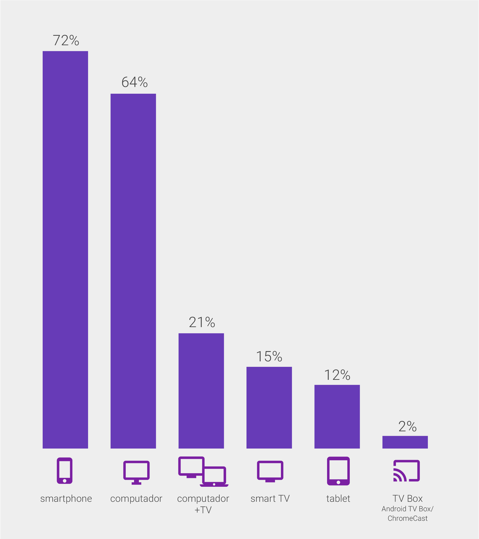 O contato com esse material ainda permite acessar outros dados importantes, vindos de pesquisas como Video Viewers Brasil e Brand Building on Mobile. Prepare-se para uma linguagem mais desprendida, com raciocínios mais curtos, mas ainda assim muito válido. O gráfico abaixo aponta o consumo de vídeo por dispositivo, mostrando como o celular está na frente.