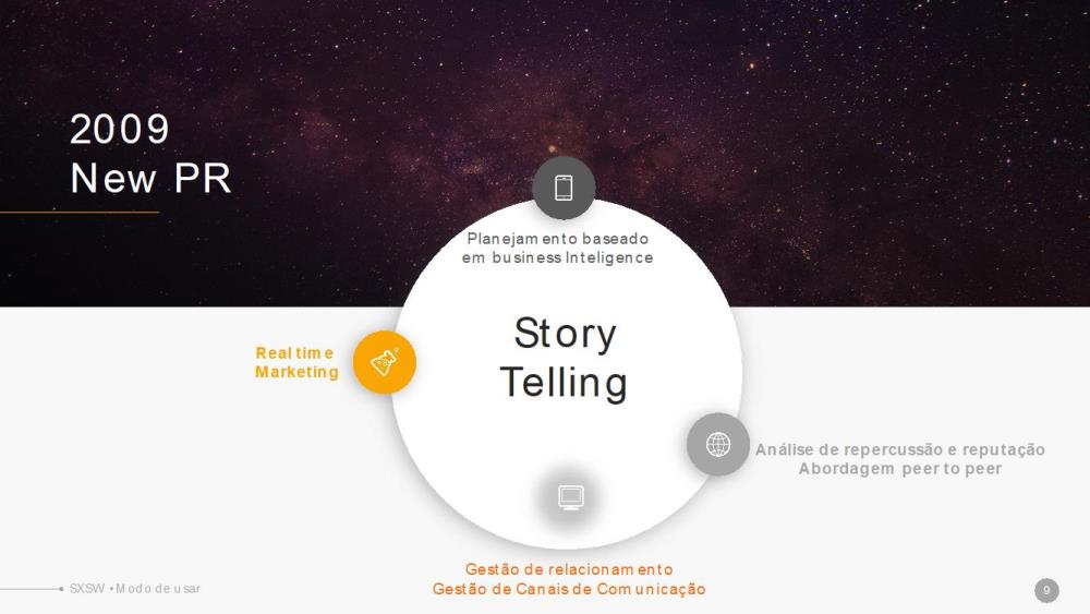 Então surgiu o storyliving, o nome do jogo hoje. Entram em cena real time marketing, big data em múltiplos touchpoints, jornadas dos stakeholders em ambiente multiplataforma, planejamento baseado em business intelligence e abordagem peer to peer.