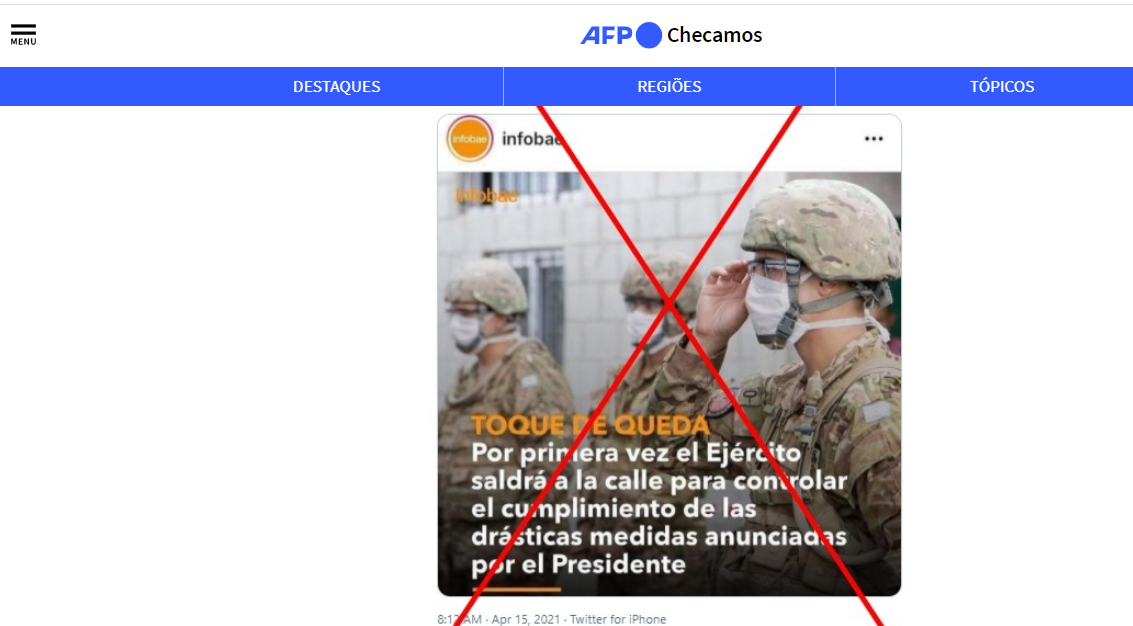 Após o presidente argentino, Alberto Fernández, anunciar, em 14 de abril, um endurecimento nas medidas de combate à covid-19 no país, começou a circular nas redes e em meios de comunicação que a Argentina havia ordenado que as Forças Armadas fizessem cumprir essa decisão. Até mesmo o presidente Jair Bolsonaro reproduziu essas versões. Mas, na verdade, o anúncio de Fernández reforça as tarefas de cuidado sanitário que os militares já exerciam desde o início da pandemia e não prevê sua participação em operações de segurança interna. Além disso, é incorreto o período de toque de recolher viralizado.