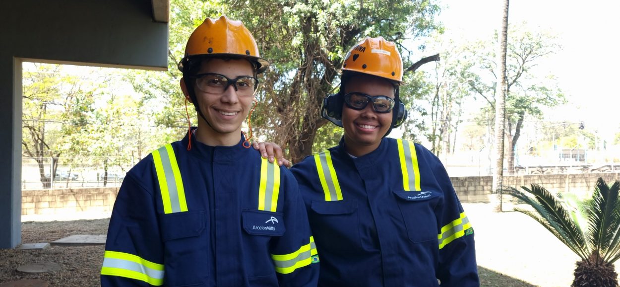 Aprendizes da unidade de Piracicaba - Geovanna dos Santos e Ruan Fernando Honorato Crédito: Divulgação ArcelorMIttal
