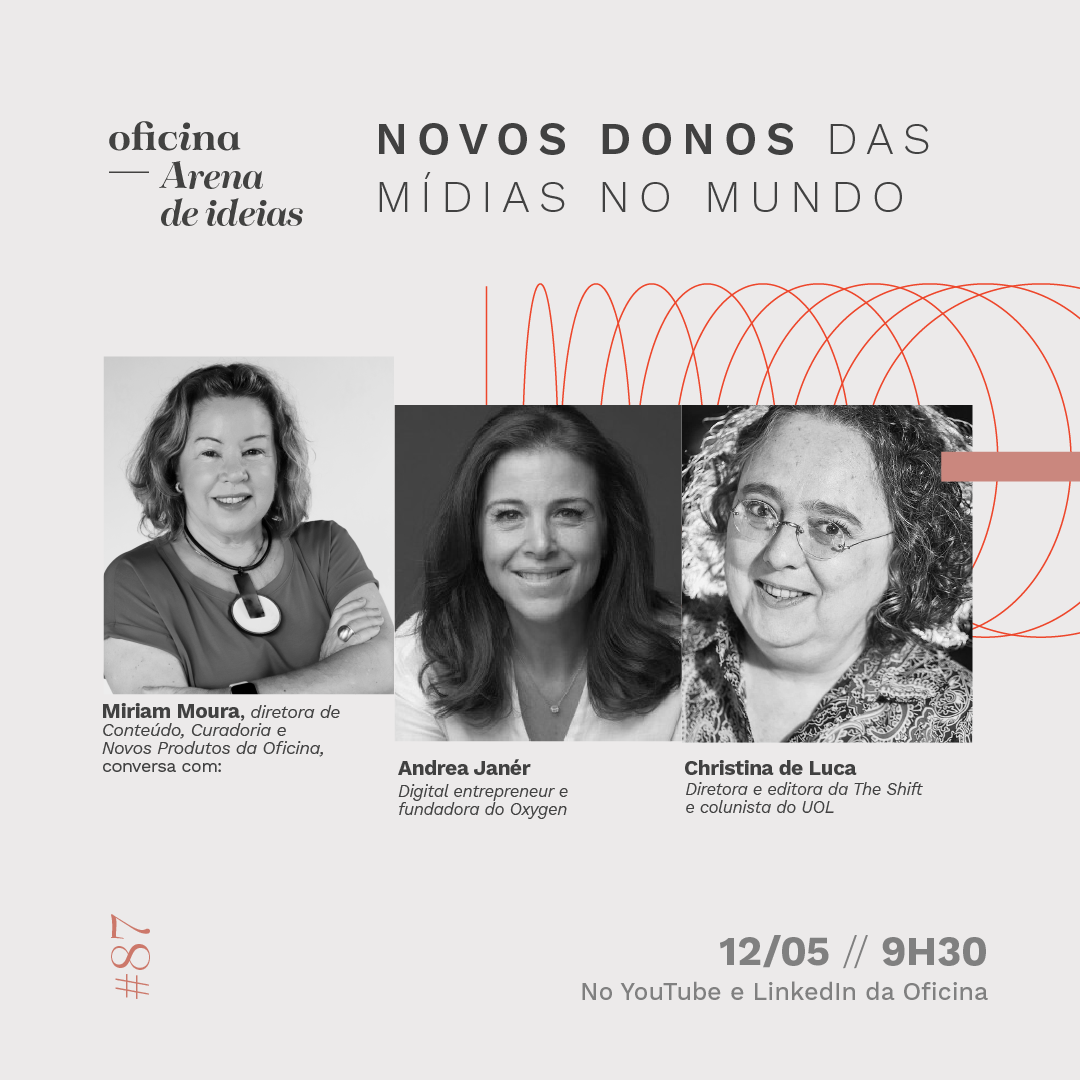 Participarão da conversa Christina de Luca, diretora e editora da The Shift e Andrea Janér, empreendedora digital e fundadora da Oxygen. O webinar será apresentado por Miriam Moura, diretora de Conteúdo, Curadoria e Novos Produtos da Oficina Consultoria.