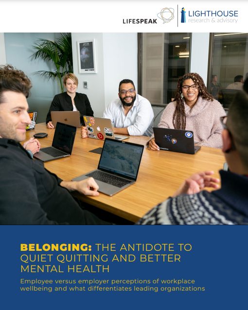 A Lighthouse Research & Advisory Group, em nome da LifeSpeak, oferta ao mercado o estudo “Belonging: the antidote to quiet quitting and better mental health” com percepções do funcionário versus empregador sobre o bem-estar no local de trabalho e o que diferencia as organizações-líderes.