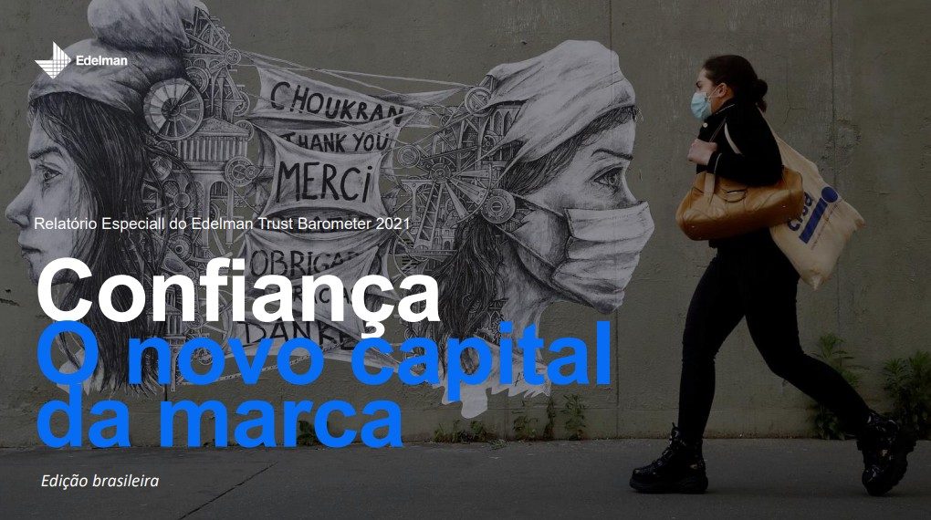 O relatório especial Edelman Trust Barometer 2021: Confiança – O Novo Capital da Marca revela que, hoje, a relevância de uma marca reside na intersecção de sua cultura, de seu propósito e das carências das sociedades. Com isso, o foco do consumidor deixou de ser suas necessidades pessoais para se tornar as necessidades do coletivo – defesa dos direitos humanos e combate ao racismo estrutural e às mudanças climáticas compõem a lista. Esse novo modelo favorece as marcas que inspiram mais do que amor: inspiram confiança. As marcas que fazem isso são recompensadas pelo consumidor – disposto a defender, comprar, manter-se fiel e engajar-se mais. Com trabalho de campo de 12 de maio a 02 de junho de 2021, a pesquisa ouviu 14 mil pessoas em 14 países (África do Sul, Alemanha, Arábia Saudita, Brasil, Canadá, China, Coreia do Sul, Emirados Árabes, EUA, França, Índia, Japão, México e Reino Unido). Conheça a seguir os destaques do Brasil: