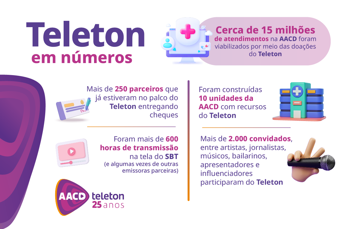 História de sucesso. A AACD está sempre em movimento e pretende seguir realizando o Teleton por muitos anos, para sempre colocar em evidência temas como inclusão, acessibilidade e combate ao capacitismo, além de continuar levando atendimento de qualidade e excelência para os brasileiros que mais precisam.