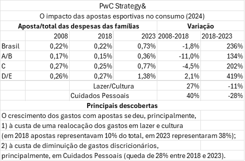 O impacto das apostas esportivas no consumo. PwC Strategy&, 2024 (https://www.strategyand.pwc.com/br/pt/relatorios/o-impacto-das-apostas-esportivas-no-consumo.html).