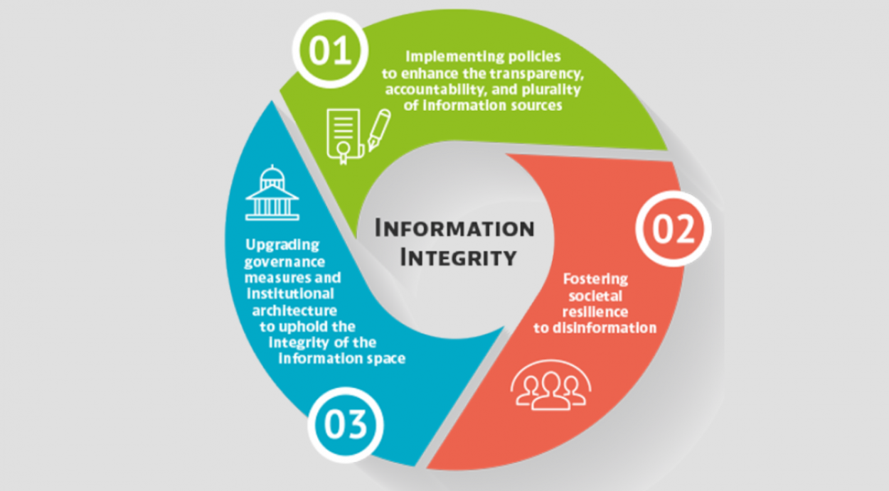 A OCDE, juntamente com a ONU e alguns governos, vem abordando a questão sob a perspectiva da ‘integridade da informação’. A abordagem sugere que, enquanto o acesso a diversas fontes de informação independentes é crucial para fomentar o debate público e a vida democrática, a desinformação representa uma ameaça significativa, comprometendo a coesão social, o debate público e a capacidade de lidar com desafios políticos complexos. Agravada pelas tecnologias digitais de comunicação, a desinformação afeta áreas críticas como saúde pública, segurança nacional e mudança climática, ao minar fatos comprovados e aprofundar divisões sociais.