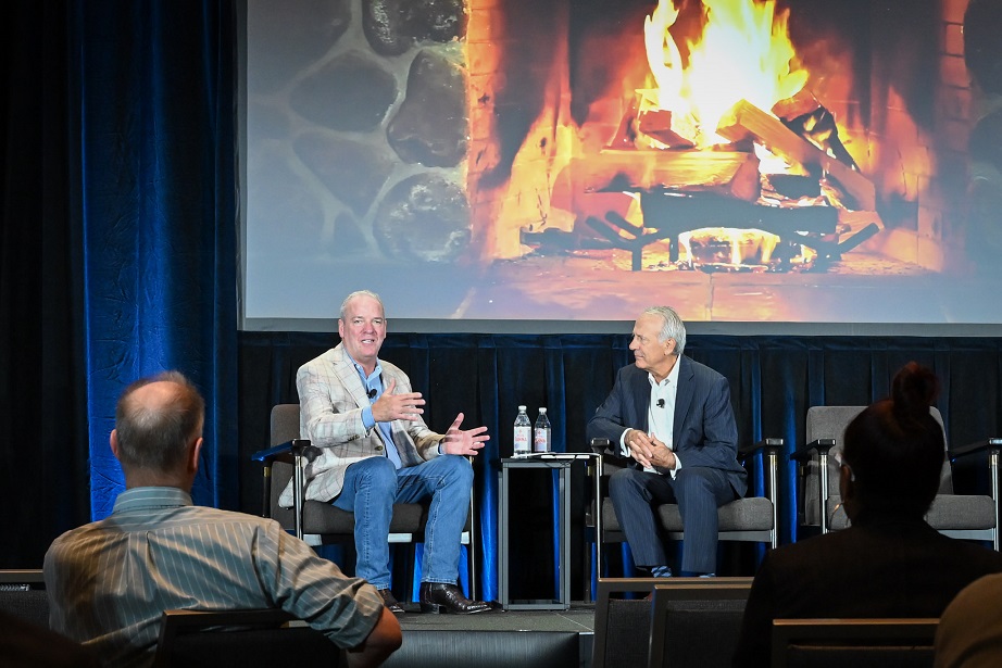 Roger Bolton, presidente da Page Society, e o fundador do WSJ Leadership Institute, Alan Murray, no painel de abertura da Conferência Anual 2025 da Page Society (foto: Page Society)