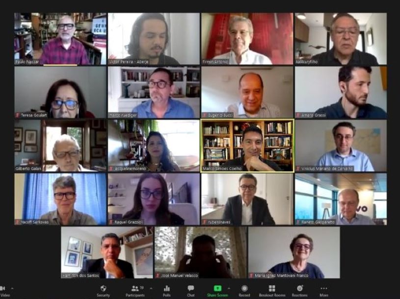 Em reunião do Conselho Consultivo da Aberje, realizada no dia 31 de março, o diretor-presidente da Aberje Paulo Nassar, apresentou e saudou os novos conselheiros consultivos: Rosana Aguiar, executiva de Comunicação, Brand e Cultura Organizacional; Marcelo Behar, VP de Sustentabilidade e Assuntos Corporativos da Natura, e Yacoff Sarkovas, fundador e consultor sênior da Sarkovas Propósitos. Na ocasião, houve um debate sobre “O papel das lideranças empresariais na defesa da democracia”, com a participação de Sarkovas e do sociólogo Marco Aurélio Ruediger, diretor da DAPP – Diretoria de Análise e Políticas Públicas da FGV, entidade que mantém o blog Democracia & Comunicação no portal Aberje.