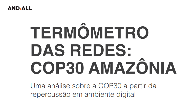 A AND, ALL – Reputação e Influência, acaba de lançar o estudo Termômetro das Redes: COP30 Amazônia, com insights sobre como o tema COP30 tem sido discutido no ambiente digital e quais são os caminhos mais eficazes para as marcas construírem narrativas relevantes sobre o assunto.