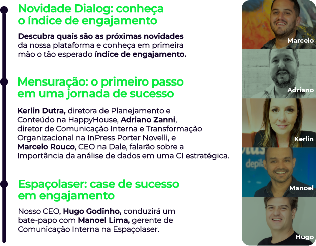 Pensando nisso, a Dialog reuniu um time de especialistas para conduzir um conteúdo primoroso sobre esse tema no Connection, um evento fechado com vagas limitadas que acontecerá presencialmente no dia 20/10, em São Paulo.