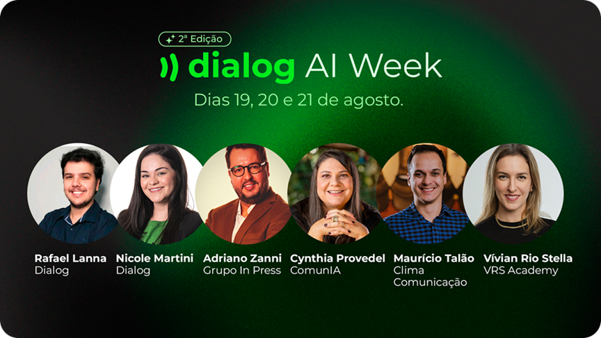 A Dialog promove entre os dias 19 e 21 de agosto a 2ª edição da Dialog AI Week. Com inscrições gratuitas, serão 3 dias de lives exclusivas sobre o uso da Inteligência Artificial na área, explorando o verdadeiro potencial da IA para inovar, otimizar e engajar de forma mais eficaz.