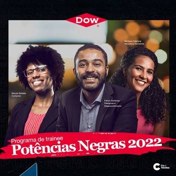 A multinacional Dow abriu as inscrições para a segunda edição do seu Programa de Trainee “Potências Negras”. Assim como no ano passado, as vagas são exclusivas para candidatos pretos e pardos. A iniciativa integra as várias ações afirmativas instituídas e aprimoradas pelo Dow ACTs, compromisso global assumido pela companhia em 2020 com o objetivo de ampliar as práticas de inclusão racial na empresa e na sociedade.
