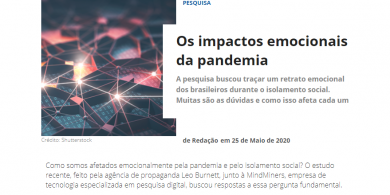 Pesquisa buscou traçar um retrato emocional dos brasileiros durante o isolamento social. Muitas sã.