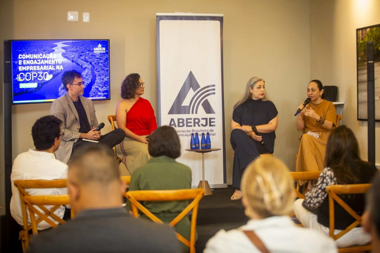Os resultados do estudo foram apresentados por Victor Pereira, gerente de Relações Institucionais da Aberje. Em seguida, Mônica Alvarez, gerente de Comunicação Corporativa na Alubar Global Management e diretora do Capítulo Aberje Amazônia, mediou um debate com Fernando Alves, consultor de Comunicação na Hydro; Nêmora Reche, diretora de Comunicação Corporativa da Syngenta; e Rita Soares, sócia-fundadora da Jambo Estratégias em Comunicação.