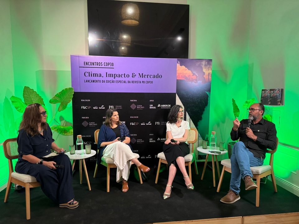 A programação incluiu dois debates. O primeiro, “Estratégias Empresariais para um Futuro Sustentável”, mediado por Ivana Oliveira, diretora da Jambo Estratégias em Comunicação e idealizadora da Casa Balaio, abordou como articular metas ESG com realidades amazônicas, bioeconomia e cadeias produtivas regenerativas, desafios logísticos, casos de sucesso locais e expectativas para a COP30. Participaram Cristiane Lima Cortez, assessora técnica do Conselho de Sustentabilidade da FecomercioSP; Joanna Martins, sócia-fundadora da Manioca e pesquisadora em cultura alimentar amazônica; e Edivan Carvalho, coordenador do Instituto de Pesquisa Ambiental da Amazônia (Ipam) e enviado especial da sociedade civil para a COP30.
