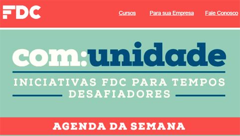 Em tempos de isolamento social a Fundação Dom Cabral – instituição associada da Aberje – promove o com:unidade, iniciativa que agrupa debates online de alto nível com professores, especialistas e convidados de diferentes áreas. Os encontros acontecem sempre às 16h, e também ficam gravados para visualização posterior no link https://www.youtube.com/playlist?list=PLomdjDfbSSRur9IEsrvZDGLLwwBseKVIM