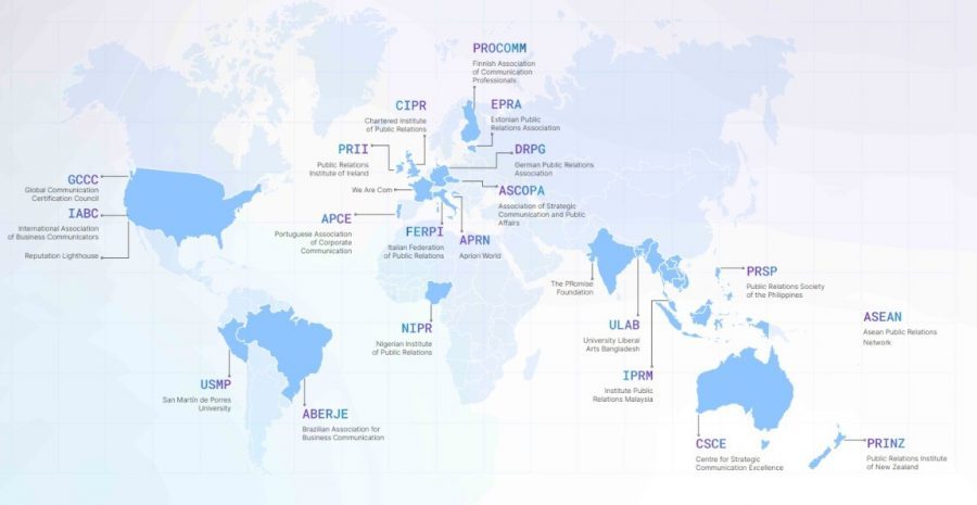 Além da Aberje, participaram da assinatura organizações similares que representam 21 países e regiões: Apriori World (Croácia), Rede de Relações Públicas da ASEAN – APRN (Sudeste Asiático), Associação de Comunicação Estratégica e Assuntos Públicos – ASCOPA (República Tcheca), Associação Portuguesa de Comunicação Empresarial – APCE (Portugal), Centro de Excelência em Comunicação Estratégica – CSCE (Austrália), Instituto Credenciado de Relações Públicas – CIPR (Reino Unido), Associação Alemã de Relações Públicas – DRPG (Alemanha), Associação de Relações Públicas da Estônia – EPRA (Estônia), Federação Italiana de Relações Públicas – FERPI (Itália), Conselho Global de Certificação em Comunicação – GCCC (Estados Unidos), Associação Internacional de Comunicadores Empresariais – IABC (Estados Unidos), Instituto de Relações Públicas da Malásia – IPRM (Malásia), Instituto Nigeriano de Relações Públicas – NIPR (Nigéria), Instituto de Relações Públicas da Irlanda – PRII (Irlanda), Instituto de Relações Públicas da Nova Zelândia – PRINZ (Nova Zelândia), Associação Finlandesa de Profissionais de Comunicação – ProComm (Finlândia), Sociedade de Relações Públicas das Filipinas – PRSP (Filipinas), Reputation Lighthouse (Estados Unidos), Fundação PRomise (Índia), Universidade de Artes Liberais de Bangladesh – ULAB (Bangladesh), Universidade San Martín de Porres – USMP (Peru) e We Are Com (França).