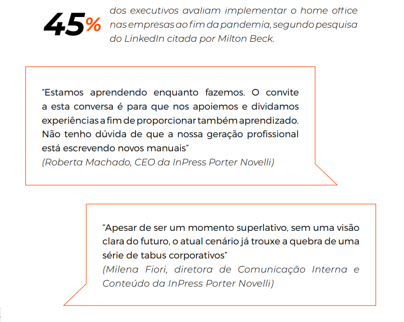 Nossa associada InPress Porter Novelli promoveu o webinar “O futuro do trabalho já virou o presente” em meados de maio. Participaram profissionais da EY Gestão de Pessoas, Siemens Energy, Ambev e LinkedIn e os principais foram publicados em um documento consolidado.