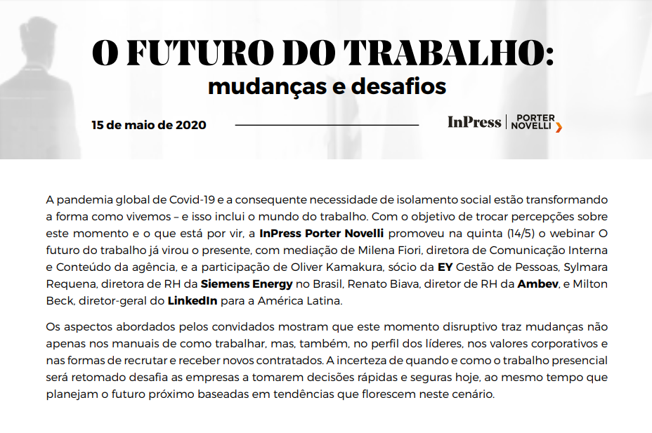 InPress Porter Novelli documenta webinar sobre futuro e presente do trabalho