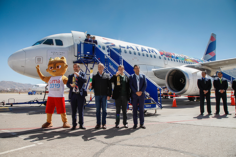 Além disso, na cerimônia, o gerente de Assuntos Corporativos da LATAM Airlines Peru, Olórtegui, apresentou um dos dois aviões Airbus 319 (A319) que foram pintados com figuras alusivas aos Jogos Pan-Americanos e Parapan-Americanos 2019, com a frase ¡Arriba América! “Nossos aviões levarão a mensagem de que o Peru é a sede dos Jogos Pan-Americanos e Parapan-Americanos 2019, em 2019, e também será um veículo para divulgar a arte urbana de um de seus maiores expoentes, Joan Jiménez Suero, conhecido como um dos responsáveis por realizar o design que representa o sentimento e o entusiasmo de todos os atletas e peruanos como país anfitrião”, disse o gerente da companhia aérea.
