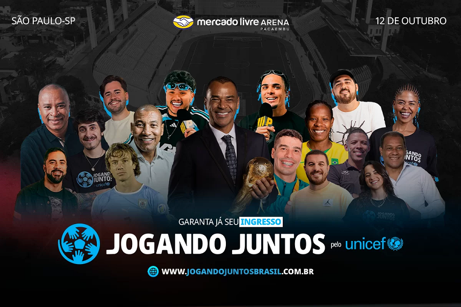 Organizado pela empresa Scout Sports, o “Jogando Juntos” marca as comemorações dos 75 anos de atuação do UNICEF no Brasil e reunirá ex-jogadores, personalidades e criadores de conteúdo em uma grande celebração. Os ingressos já estão disponíveis no site do evento.