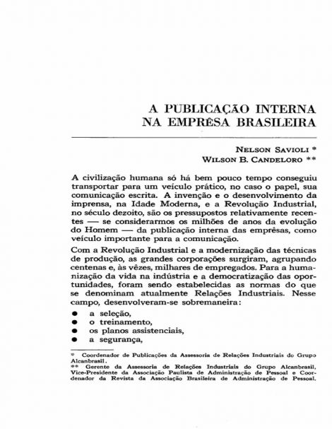 https://www.aberje.com.br/wp-content/uploads/2022/10/1968_pesquisa-publicada-na-RAE-e1665161159724.jpg|Publicação da pesquisa "A publicação interna na empresa brasileira", de Nelson Savioli e Wilson B. Candeloro, na Revista RAE, v. 8 n 29 1968 A RAE – Revista de Administração de Empresas, da Fundação Getúlio Vargas, publica resultado de pesquisa realizada na I Convenção Nacional de Editores de Jornais e Revistas de Empresa. Trata-se da primeira pesquisa científica sobre Comunicação Empresarial, marcando o pioneirismo da Aberje nesse campo