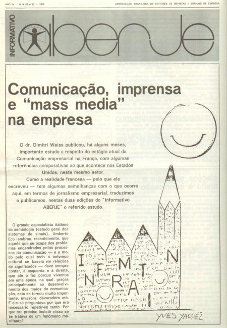1976 A Aberje publica o estudo “Comunicação, imprensa e mass media na empresa”, de Dimitri Weiss, um alentado estudo sobre a situação da comunicação empresarial na França e no mundo