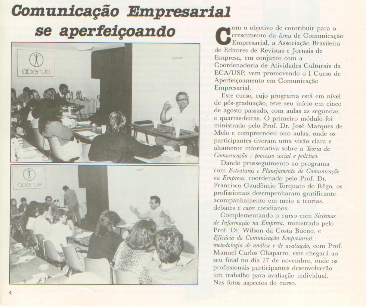 1984 É lançado o livro Jornalismo Empresarial – Teoria e Prática, de Gaudêncio Torquato, promovido pela Aberje