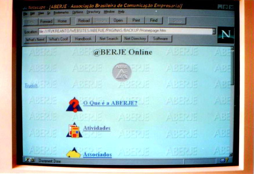https://www.aberje.com.br/wp-content/uploads/2022/10/1996_site-Aberje.jpeg|Primeiro site Aberje1996 Em junho entra no ar o site da Aberje, tornando-se a primeira entidade comunicacional a colocar seus serviços na Internet