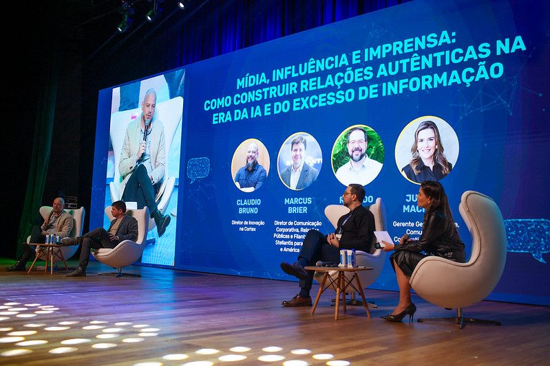 Já Marcus Brier refletiu sobre o lugar da comunicação dentro das organizações e reforçou a necessidade de ampliar seu protagonismo. “Sonho com o dia em que a comunicação não será um puxadinho. Queremos mostrar o nosso valor para o negócio. Somos seres sociais e, embora a IA seja parte do presente, nada substitui o que fazemos agora”, declarou.
