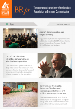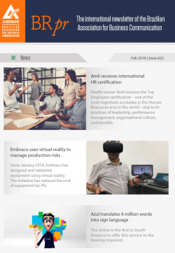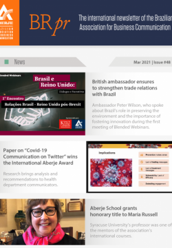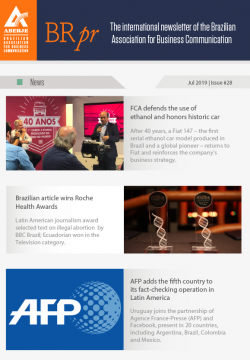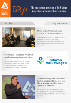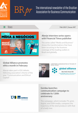 AberjeA BRpr é a plataforma internacional da Aberje – Associação Brasileira de Comunicação Empresarial. Ela oferece ao público fora do Brasil uma visão selecionada dos principais temas que pautam a agenda nacional, com análises sobre seus impactos na comunicação empresarial e na reputação no país. A newsletter é editada por Victor Henrique Pereira, gerente de Relações Internacionais da Aberje.