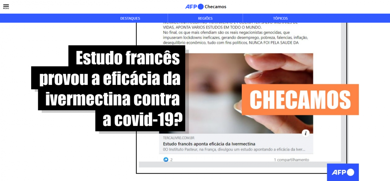 Publicações compartilhadas desde o último 15 de julho afirmam que um estudo do Instituto Pasteur da França aponta a eficácia da ivermectina para tratar a covid-19. No entanto, elas omitem que essa pesquisa foi feita com um modelo animal e que, portanto, seus resultados ainda precisam ser avaliados em ensaios clínicos em humanos.