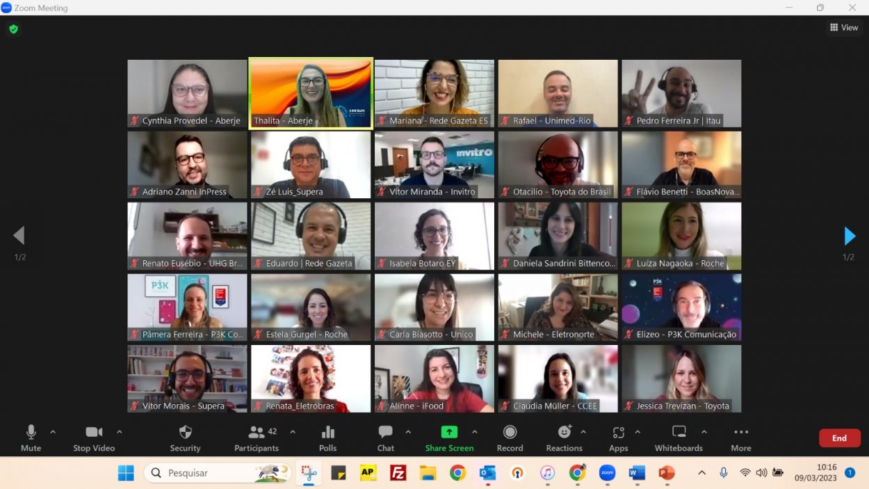 Com o intuito de tornar os próximos encontros do Comitê de Comunicação Interna e Marca Empregadora cada vez mais colaborativos e dinâmicos, a coordenadora do grupo, Cynthia Provedel aproveitou a ocasião para promover uma rápida atividade entre os membros do comitê. “É um espaço de fortalecimento de escuta que a gente imagina que seja cada vez mais importante para os nossos encontros, tentando cultivar cada vez mais um ambiente de diálogo, de troca e de compartilhamento de conhecimento”, explicou.