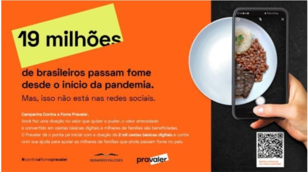 De acordo com o Inquérito Nacional sobre Insegurança Alimentar no Contexto da Pandemia da Covid-19 no Brasil, realizado pela Rede Brasileira de Pesquisa em Soberania e Segurança Alimentar e Nutricional (Rede Penssan), hoje, em meio à pandemia 19 milhões de brasileiros estão no nível de insegurança alimentar grave, ou seja, passando fome. Por isso, o Pravaler, maior plataforma de soluções financeiras para educação do país, une forças à iniciativa “Corona no Paredão, Fome Não” da ONG Gerando Falcões e lança a campanha Contra a Fome Pravaler com a doação inicial de 2 mil cestas básicas digitais.