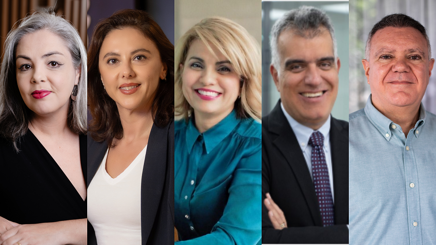 André Curvello, diretor de Comunicação da CNI; Maurício Gouvea dos Santos, CEO do Grupo Alubar; Rochelle Ford, CEO da Page Society; Hamilton dos Santos, diretor-executivo da Aberje; e Mônica Alvarez, gerente de Comunicação Corporativa da Alubar Global Management e diretora do capítulo Aberje Amazônia