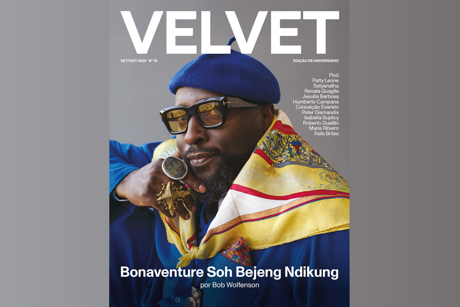 Em setembro, a Velvet comemora seus três anos com uma edição especial que une arte, reflexão e sofisticação. A capa traz um encontro inédito entre dois nomes de peso: o fotógrafo Bob Wolfenson, um dos mais celebrados retratistas do Brasil, registra Bonaventure Soh Bejeng Ndikung, curador da Bienal de São Paulo, diretamente do Pavilhão da Bienal no Ibirapuera.
