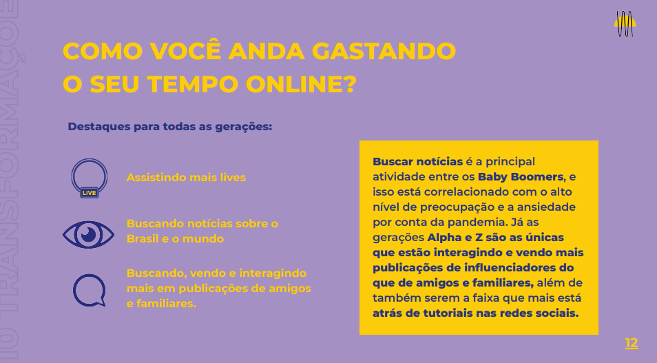 “O Novo Normal: 10 transformações no consumo digital geradas pelo distanciamento social” é a publicação do Squid para compreender as tendências de consumo digital para identificar as principais atividades realizadas por mais de 3.500 pessoas de diferentes partes do país durante o período de distanciamento social. O objetivo foi identificar como estão lidando com esse momento e impactando seus hábitos de consumo nesse período. Acesse o PDF aqui