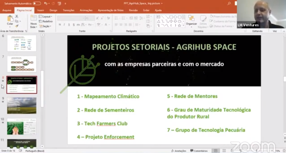 O foco inicial é no Mato Grosso, onde o hub tem até instalação física, mas por conta da pandemia está atuando de forma digital. “Estamos abertos à parcerias para o desenvolvimento e aplicação de novas tecnologias. Temos projetos setoriais para impactar o setor como um todo a serem desenvolvidos ao longo dos próximos anos, como mapeamento climático, rede de sementeiros, grupo de tecnologia pecuária, entre outros”, conta.