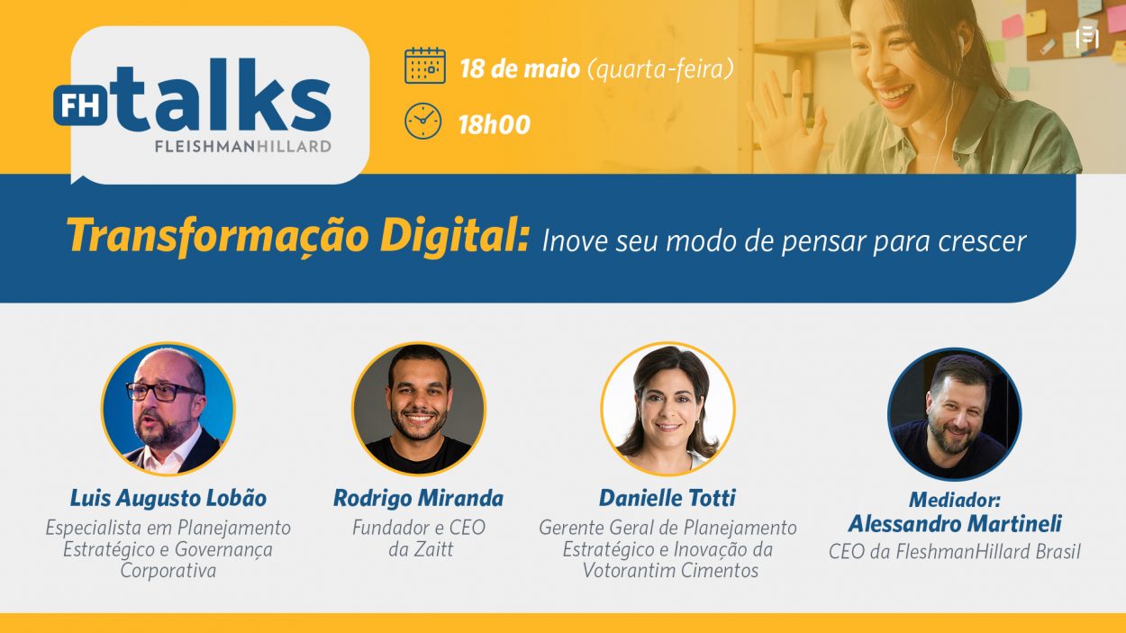 Para mostrar como a transformação digital pode trazer resultados positivos para as empresas, independentemente do seu tamanho e segmento, a FleishmanHillard Brasil realizará o FH Talks “Transformação Digital: inove seu modo de pensar para crescer”.