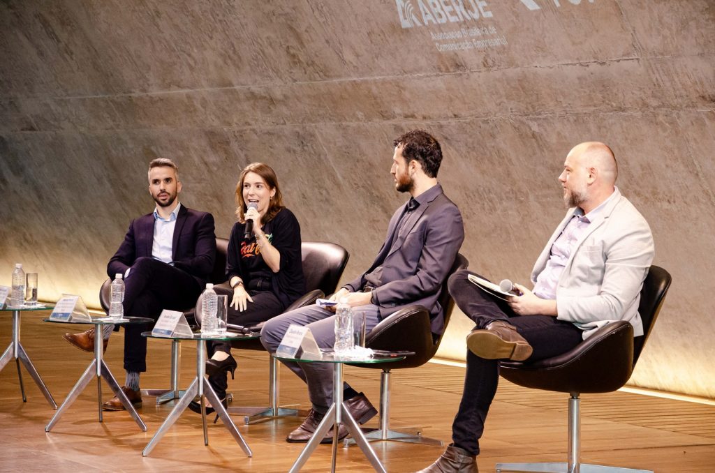 No painel “A influência da inteligência artificial na comunicação corporativa dentro e fora das organizações”, com a mediação de Claudio Bruno, Diretor de Inovação da Cortex, o público acompanhou o debate sobre o tema entre Amaro Grassi, VP de Comunicação da Fundação Getúlio Vargas; Fábio Lobato, Diretor de Public Affairs da Prospectiva Public Affairs Latam; e Maura Peres, Gerente de Comunicação Corporativa da Coca-Cola Brasil.